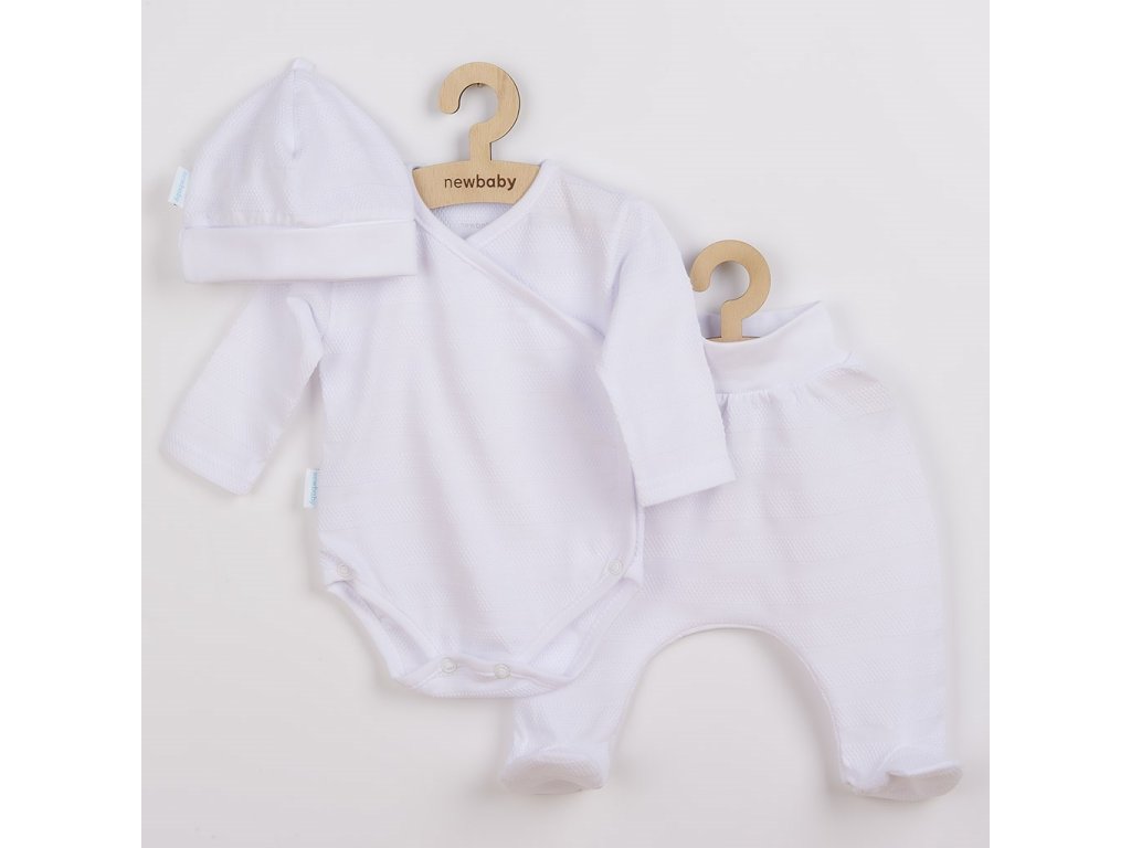 Roztomilá dojčenská 3-dielna súpravička pre bábätká. Súpravička je vyrobená z veľmi príjemného, mäkkého a kvalitného materiálu, ktorý je vhodný pre bábätká a je vhodná nielen do pôrodnice. Obsahuje celorozopínacie body s dlhým rukávom, polodupačky a čiapočku. Body má bočné zapínanie po celej dĺžke a medzi nožičkami na cvočky. Polodupačky majú v páse širší pružný lem, ktorý netlačí na bruško bábätka. Čiapočka so širším lemom dobre drží na hlavičke bábätka a nepadá. Je veľmi praktická a netlačí na hlavičku bábätka. Celá súpravička má nový neobyčajný dizajn s atraktívnym vzorom látky. Je navrhnutá s ohľadom na potreby bábätka a je vhodná aj ako milý darček. Súpravička je v praktickej Eko krabičke.