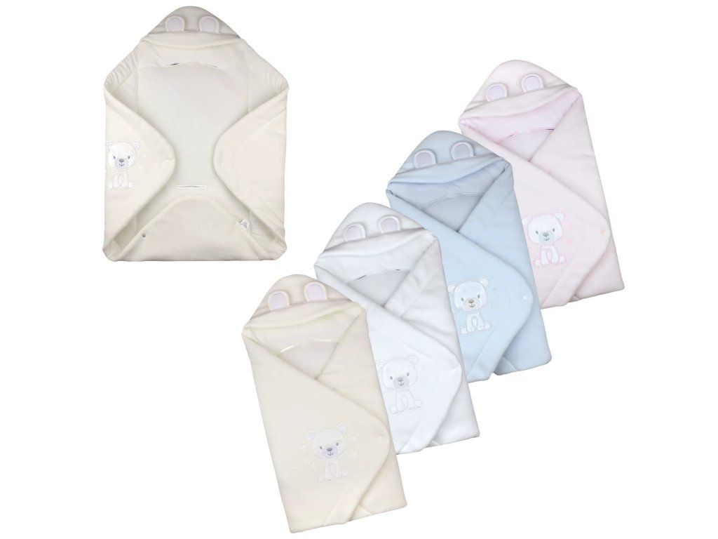 Elegantná flisová zavinovacia deka ANITA s kapucňou podšitou 100 % bavlnou. Na kapucni sú roztomilé ušká, ktoré dodávajú deke hravý vzhľad. Praktické zapínanie na patentné gombíky umožňuje pohodlné zavinutie dieťatka. Deka má navyše výrezy na pásy, vďaka ktorým je ideálna aj do autosedačky alebo kočíka. Jemná výšivka macíka vo farbe deky dotvára elegantný vzhľad.