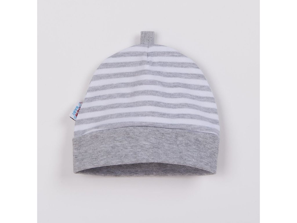 Praktická bavlnená čiapočka  pre bábätká. Čiapočka je potlačená pruhmi. Má široký pružný lem, ktorý krásne kryje ušká a netlačí na hlavičku bábätka.
