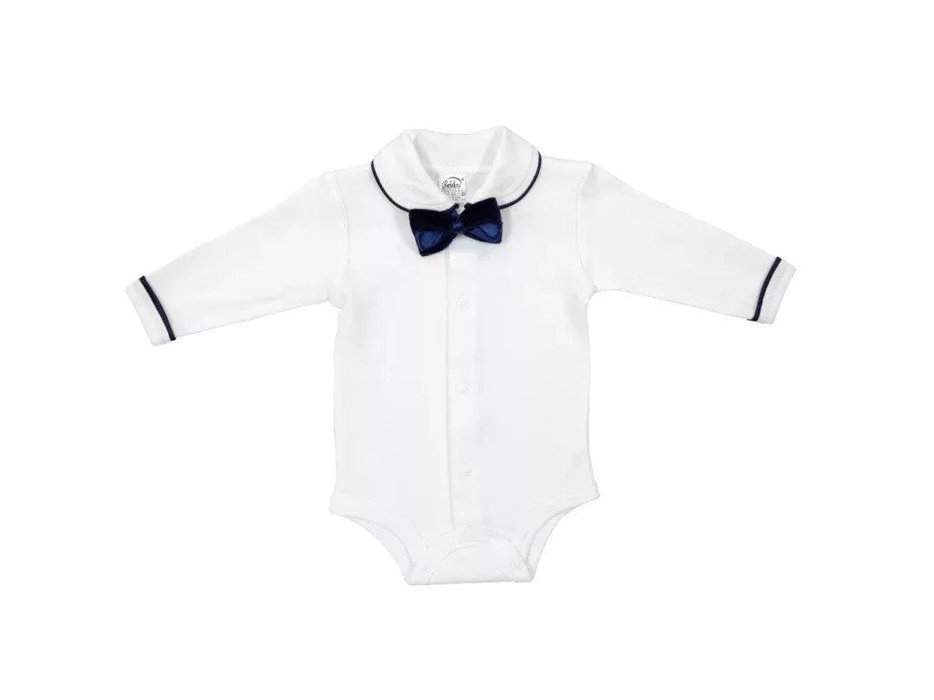 Štýlové body ELEGÁN s dlhým rukávom. Rozopínanie vpredu po celej dĺžke a medzi nôžkami na patentné gombíky. Vhodné nielen na slávnostné príležitosti. Doplnok – elegantný zamatový motýlik.