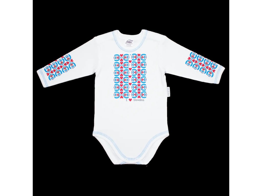Zaujímavé body JARKO pre malého folkloristu sú vyrobené z organickej 100% bavlny. Zapínanie na ramenách a medzi nôžkami na patentné gombíky zjednoduší každodenné obliekanie a vyzliekanie. Na prednom diely a rukávoch sa nachádza stálofarebná potlač na vodnej báze.