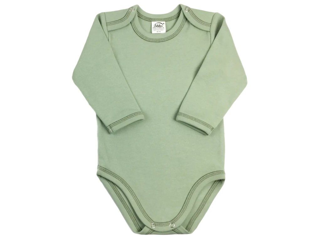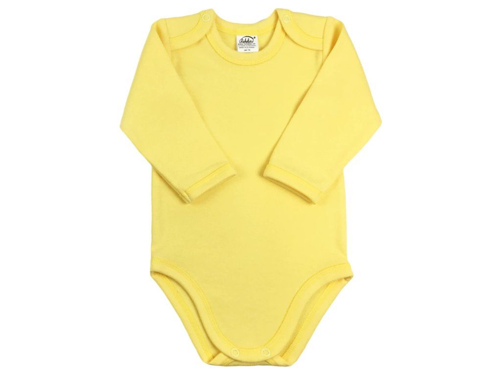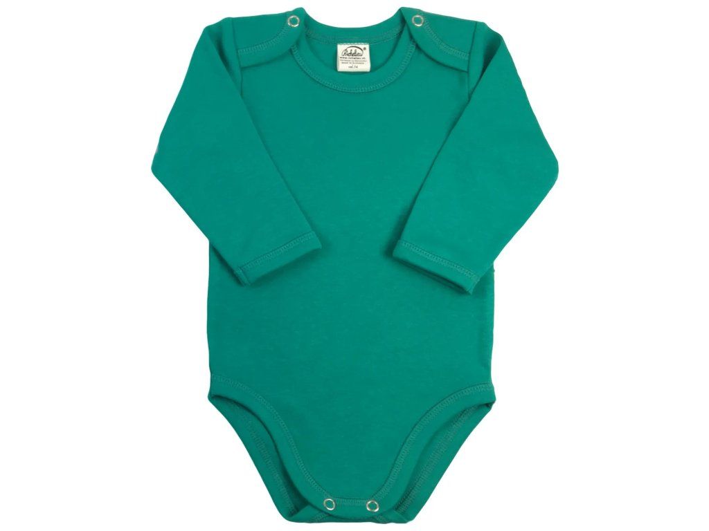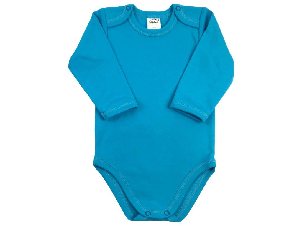 Klasické body s dlhým rukávom z kvalitnej organickej bavlny teraz v rôznych farebných odtieňoch. Body má zapínanie na ramienkach na patentné gombíky a medzi nožičkami. Sú vhodné na ďalšiu potlač/maľovanie.