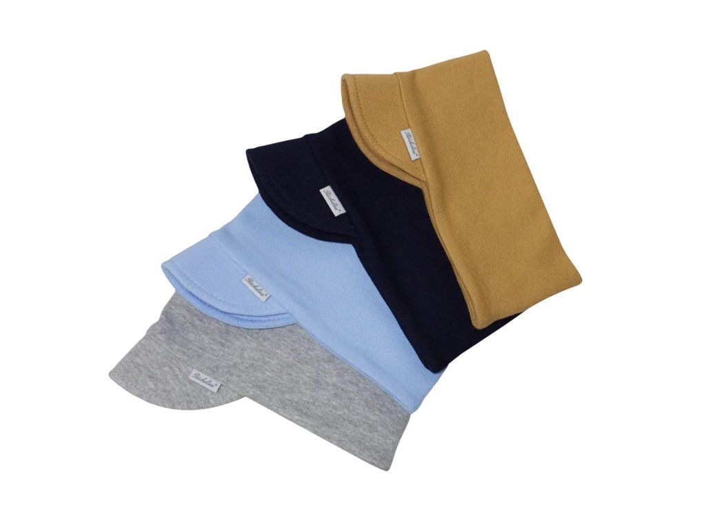 Praktická čelenka so šiltom, ktorá ochráni ušká pred vetrom. Vyrobená z organickej bavlny s prímesou elastanu.