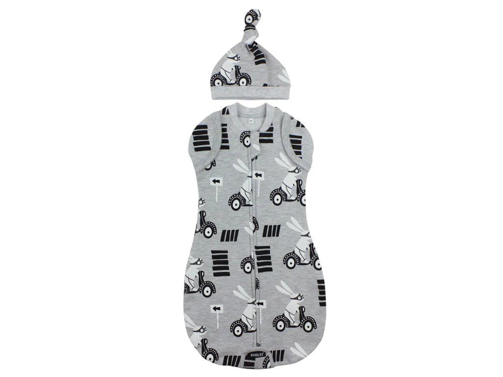 Súčasťou setu je aj roztomilá čiapočka s rovnakým vzorom, zakončená dekoratívnym uzlíkom. Táto kombinácia poskytne vášmu dieťatku maximálne pohodlie a teplo počas chladnejších dní. Kuklička je zároveň skvelým pomocníkom na pokojný spánok. Set je dostupný v rôznych vzoroch a farbách, ktoré potešia každú mamičku.