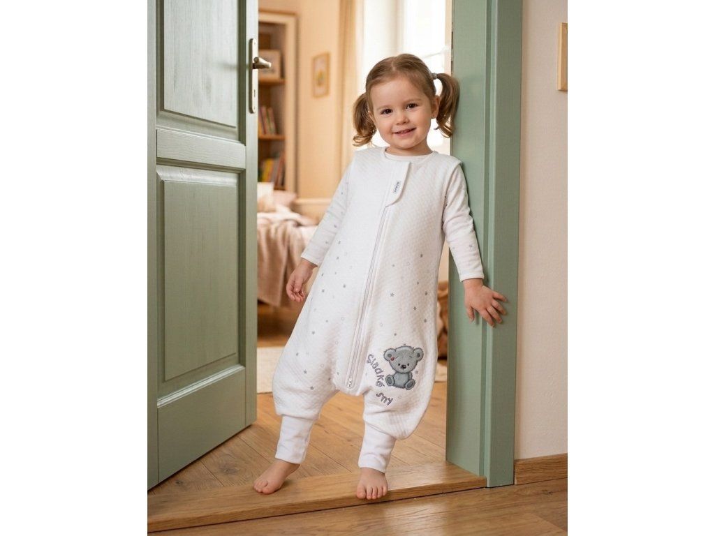 Spací vak ALIN je vyrobený z príjemného materiálu so žakárovým vzorom. Samotné spracovanie materiálu navyšuje jeho hrejivosť pridaním polyesteru medzi dve vrstvy bavlny. V prednej časti zapínanie na zips s ochranou na bradu. Celá predná časť je zdobená DGT potlačou.