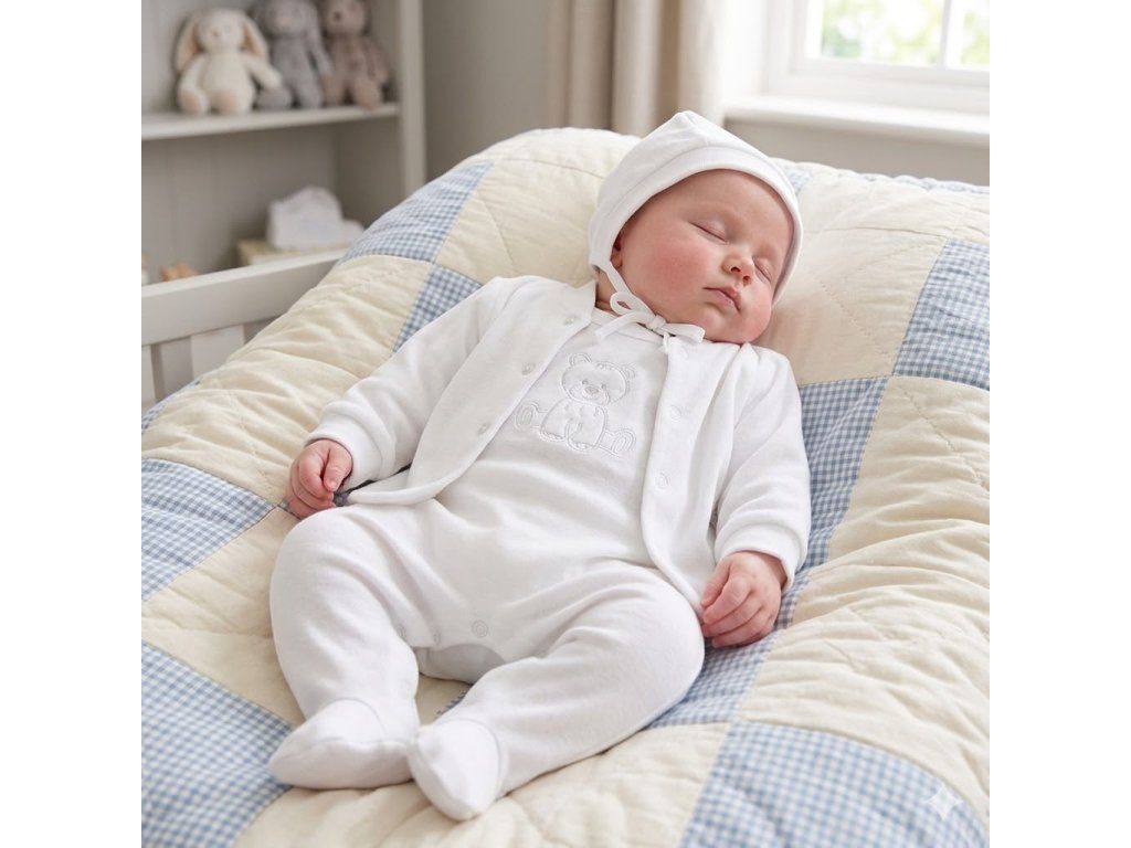 Súprava vhodná aj na krst v dvoch motívoch, vo veľkostiach od č. 56 (0-3 mesiace) do č. 74 (9-12 mesiacov).